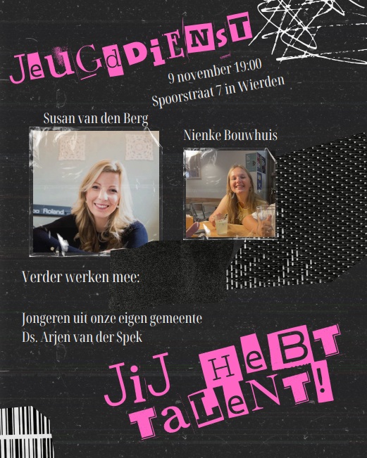Jeugddienst 9 november 19.00 uur - Talentzondag Wierden