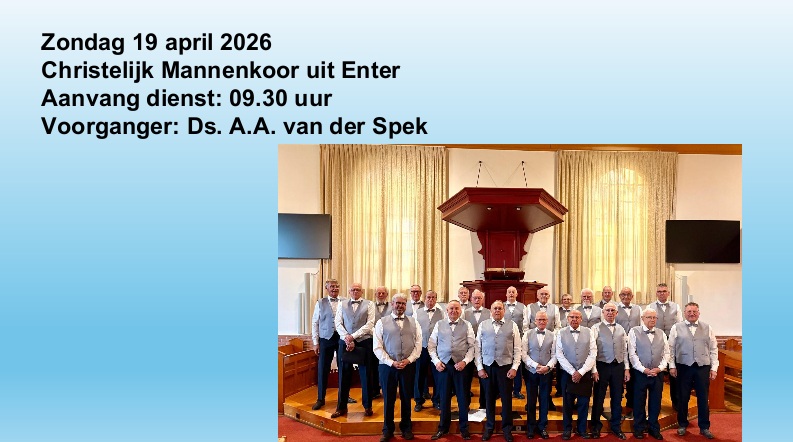 Enters Mannenkoor op 19 april 9.30 uur